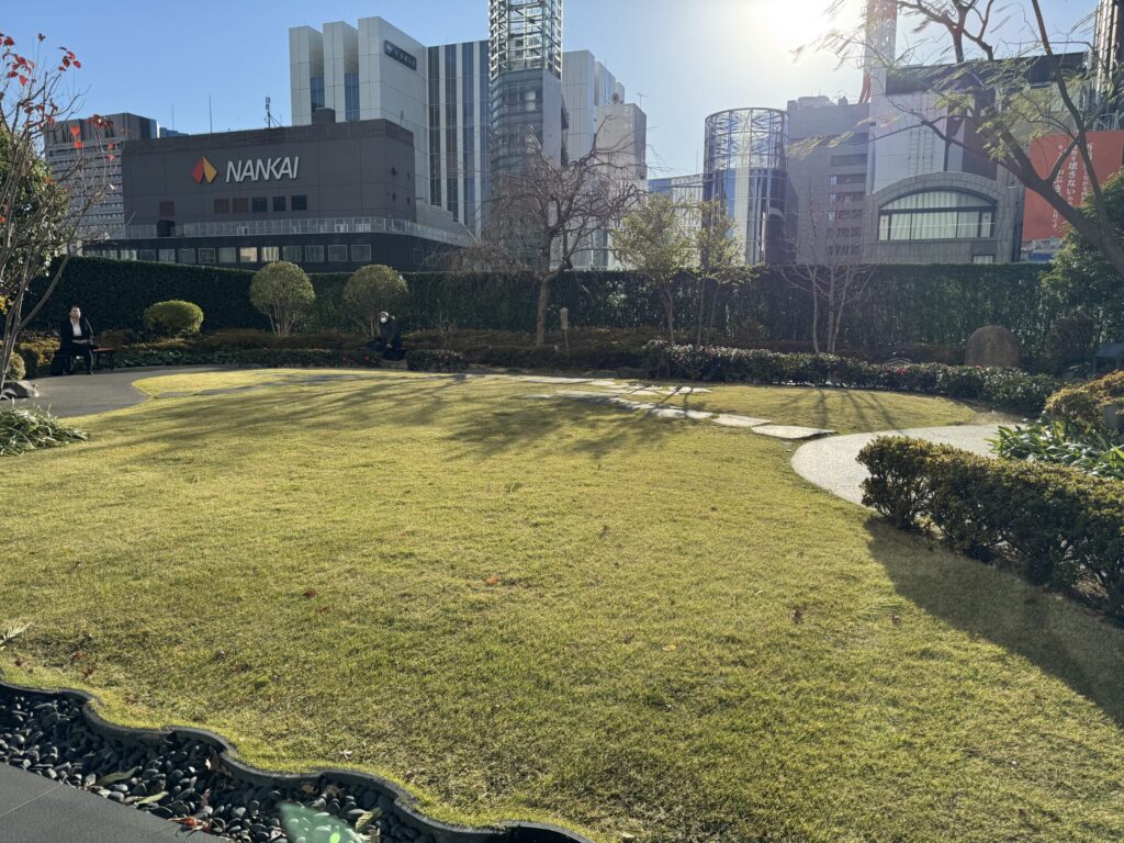 お店の近くに中庭があり、ベンチに座ってのんびりすることもできました