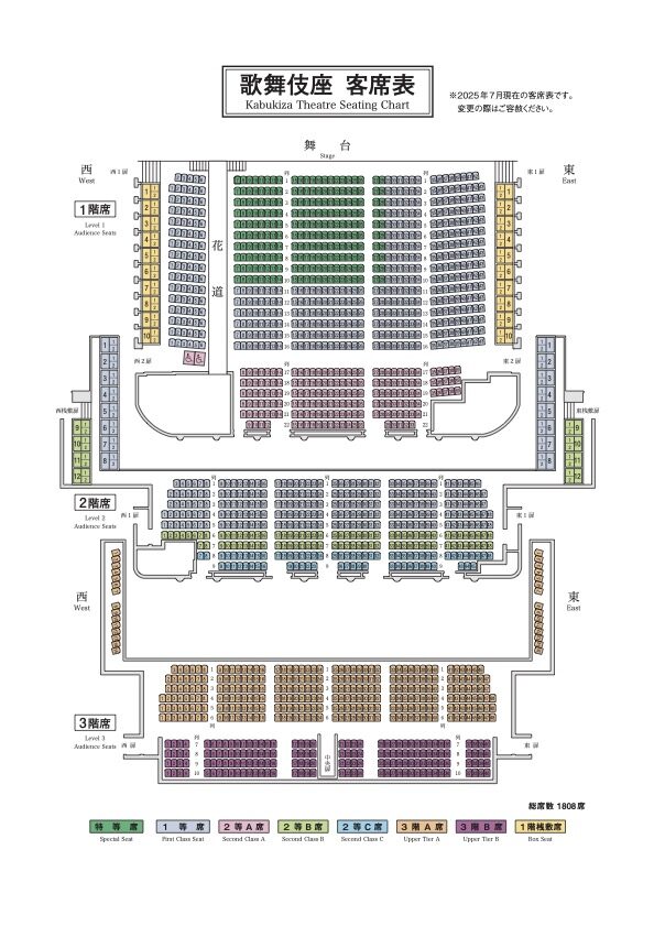 歌舞伎座の座席表はこちらの通りです